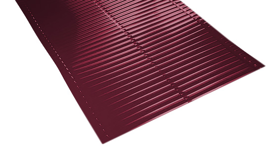 Вишневое покрытие не только защищает материал от коррозии и атмосферных воздействий, но и придает изделию привлекательный внешний вид. Это позволяет гармонично вписать ребристый желобок в общий дизайн кровельной системы, делая ее более эстетичной и завершенной.