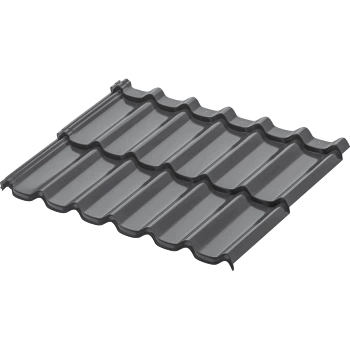 Металлическая модульная черепица Стокгольм XXL. Ключевым преимуществом металлической модульной черепицы AQUASYSTEM является скрытое крепление листов к обрешетке, что позволяет добиться непревзойдённой надёжности кровли и повышенной эстетики. Отличительной особенностью модульной черепицы являются стандартные размеры листов длиной в 2 модуля по 400 мм, что даёт колоссальные преимущества при хранении и транспортировке поддонов с черепицей. Имеет максимальную защиту от коррозии (первый класс цинкования) и повышенную УФ-стабильность.