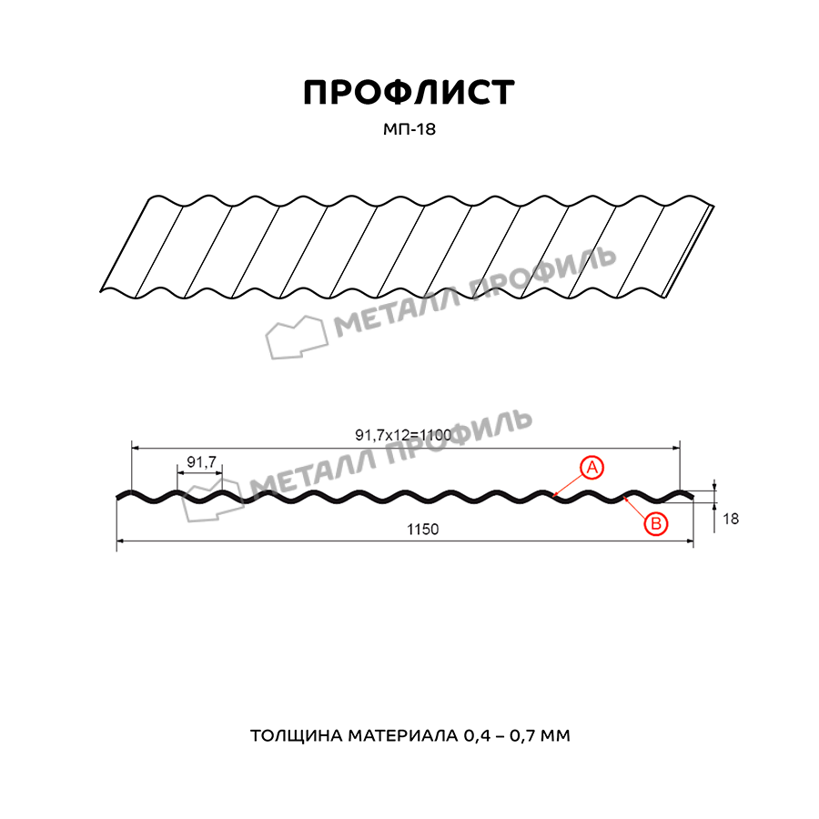 Профиль МП-18 имеет толщину 0,5 мм, что обеспечивает прочность и долговечность конструкции.