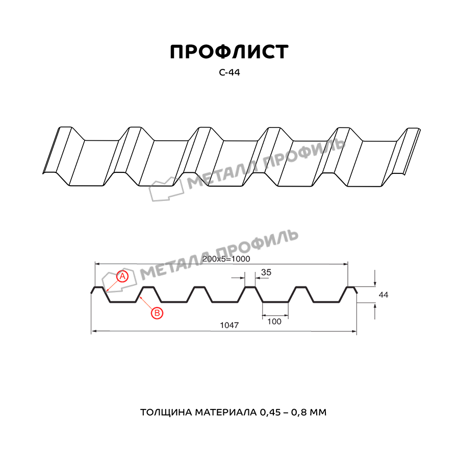 Профиль С-44 обладает высокой прочностью и устойчивостью к воздействию внешних факторов, таких как влага, солнечные лучи и коррозия.