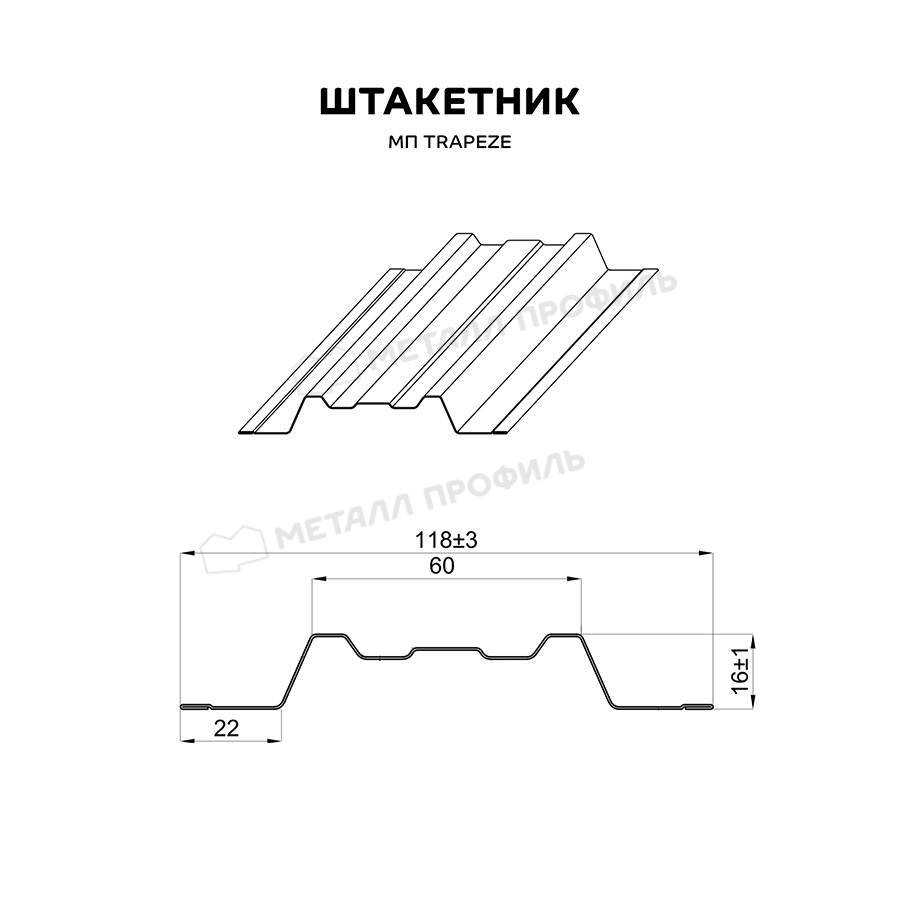 Штакетник Металл Профиль TRAPEZE-T 0,45 Полиэстер RAL5005 Синий насыщенный